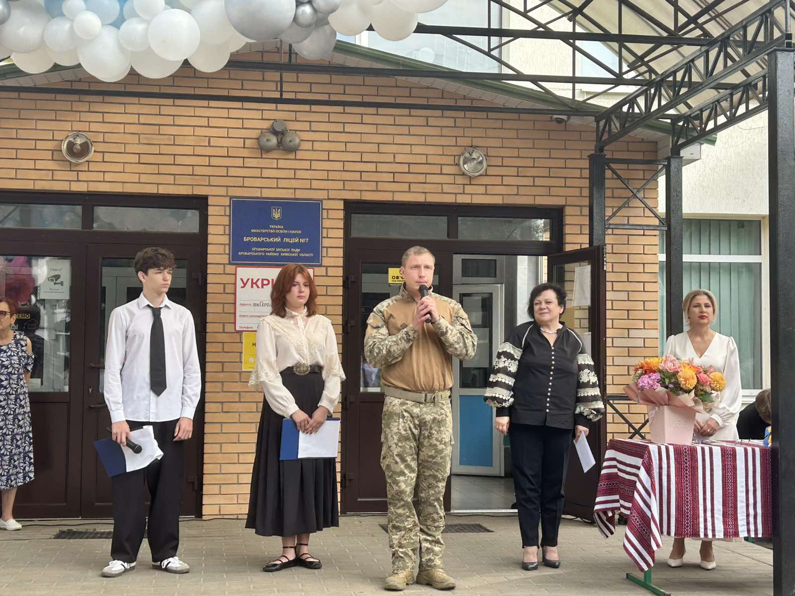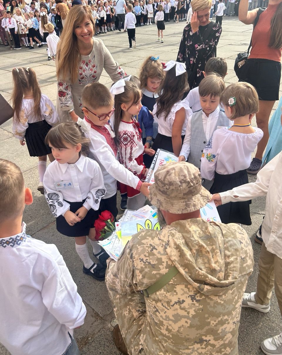 Під час святкової лінійки військові звернулися з привітанням до школярів, педагогів та батьків, а також провели патріотично-виховні бесіди для учнів старших класів.